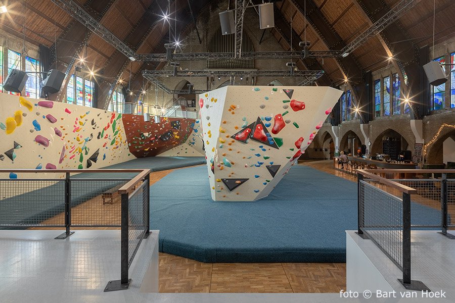 De door Daal Warries Architecten ontworpen Boulderhal in Den Haag behaalde een derde plaats bij de stemming voor de Berlagewimpel 2025, de publieksprijs voor Haagse architectuur. De boulderhal is gelegen in de door Alexander Kropholler ontworpen Lourdeskerk. Ik fotografeerde het project begin dit jaar voor de architect. Winnaar van de Berlagewimpel is de transformatie van een kantoorgebouw tot woongebouw aan de Burgemeester Elsenlaan te Rijswijk naar ontwerp van VWVL architectuur & stedenbouw.
